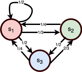 - If \(u < \sum_{k \le j}A(i, k)\), then accept the proposal state \(y_j\): set \(y_{t+1} =y_j\). Here we are just sampling from the CDF corresponding to \(A(i,\cdot)\).