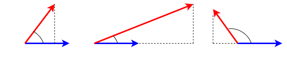 For our purposes, we will consider planar angles as a geometric figure consisting of a pair of vectors in \(\mathbb{R}^2\). The dot product (inner product) permits us to measure angle. The dot product \(a \cdot b\) satisfies the relation