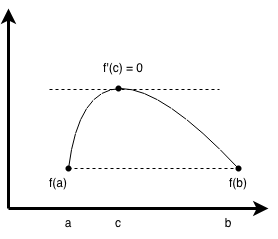 Arithmetically it states, roughly speaking, that, give a function \(f\) differentiable on some interval \((a,b)\), there exists a point \(c \in (a,b)\) such that \(f'(c) = 0\).