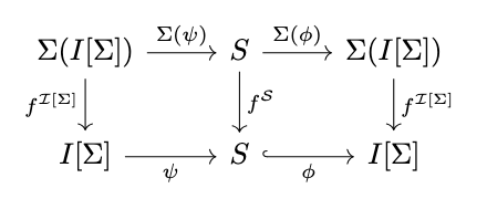 &= \Sigma(f^{\mathcal{I}[\Sigma]} \circ \phi) & \textrm{(Functoriality)} \\
