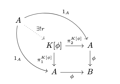 Thus, since it is also the case that \(1_{A/K[\phi]} \circ \phi_e = \phi_e\) and \(\phi_e\) is an epimorphism, \(\phi_m^{-1} \circ \phi_m = 1_{A/K[\phi]}\). Likewise, consider the following: