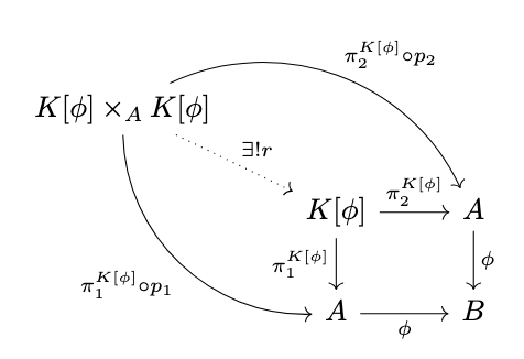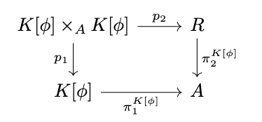 Similarly, given the pullback \(K[\phi] \times_A K[\phi]\) as in the following diagram,