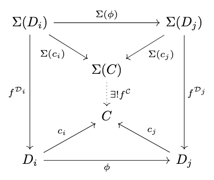 \phi \circ (f^{\mathcal{D}_i} \circ \Sigma(c_i)) &= (\phi \circ (f^{\mathcal{D}_i}) \circ \Sigma(c_i) & \textrm{(Associativity} \\